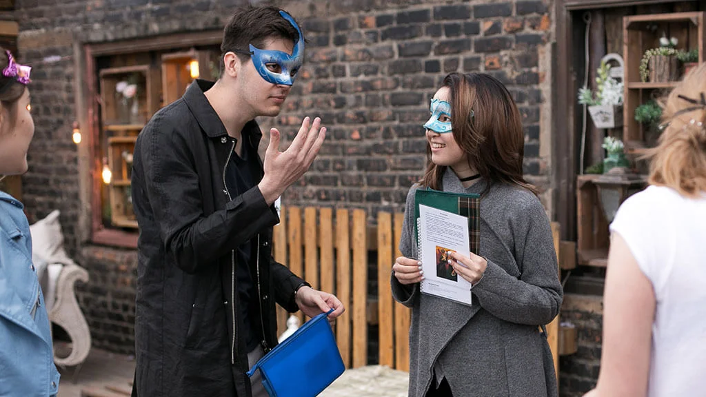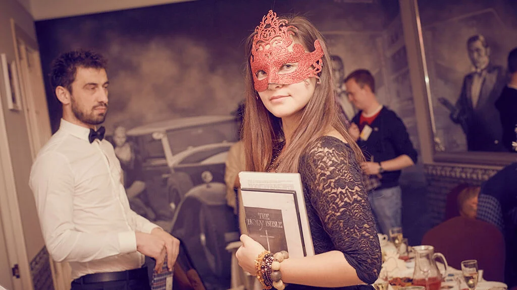 Ведущий расскажет правила. а затем при помощи музыки и разнообразного реквизита создаст атмосферу готового к балу дворца дожа. Вы получите роли, погрузитесь в историю персонажей и, надев элегантные маски, войдете в мир полный придворных интриг.