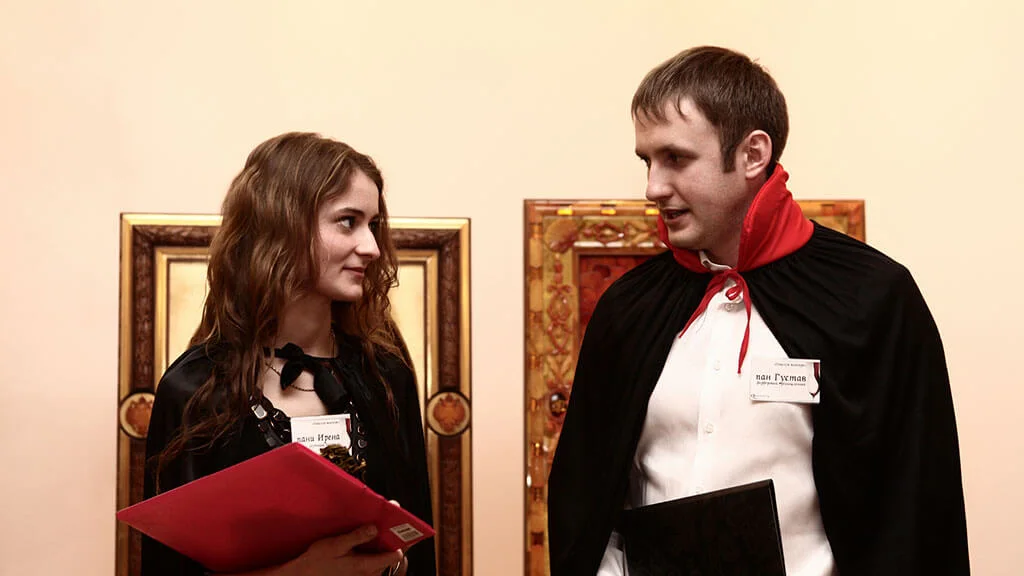 Знакомые Каминского: ценители древностей, учёные и состоятельные торговцы — обсуждают дела, вальсируют с дамами или просто отдыхают в ожидании трапезы. Приехал известный писатель пан Ярошевский, ему прочат титул нового Эдгара По, и всем не терпится узнать, о чём его новая книга.